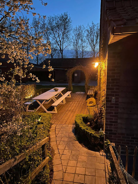 Het is heerlijk vertoeven op terras bij de afgesloten vijver!
