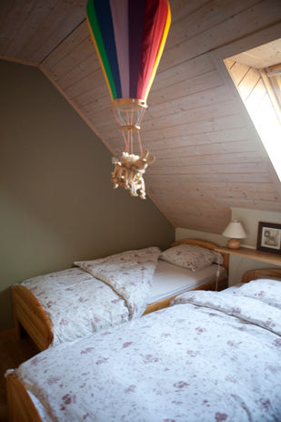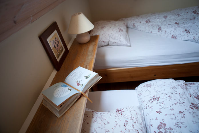 In slaapkamer 4 staan twee éénpersoonsbedden en een kinderbedje